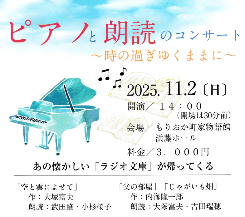 【出演情報】小杉桜子が「ピアノと朗読のコンサート~時の過ぎゆくままに~」に出演します
